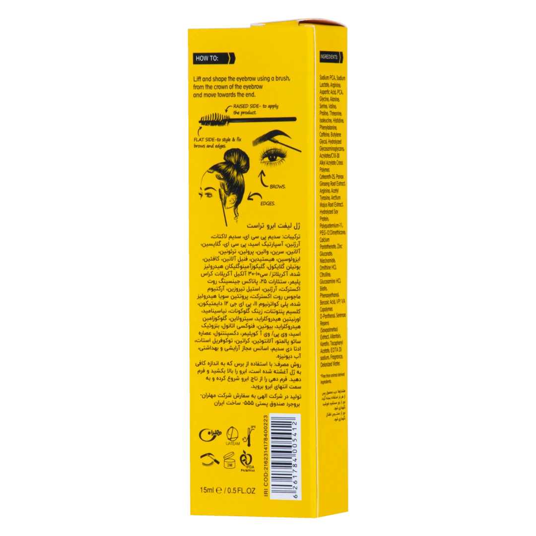 فوق العاده قوی با ماندگاری تا 24 ساعت. خشک شدن سریع، بدون سفیدک و چسبندگی. برس دوطرفه برای استفاده و استایل آسان و دقیق. مرطوب کننده قوی. مناسب ابرو و موهای کوتاه پیشانی.