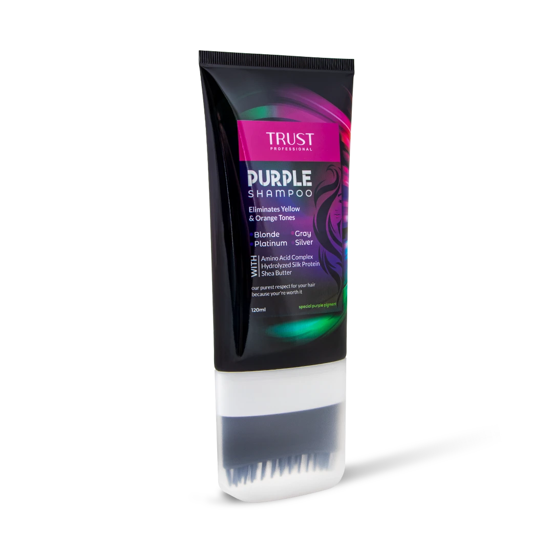 رفع زیرتناژ زردی، نارنجی و قرمزی موهای رنگ شده. احیا و افزایش ماندگاری رنگ مو. نرم کننده و درخشان کننده رنگ مو. مناسب موهای بانوان و آقایان هفته ای یکبار شامپو بنفش تراست را بر روی موهای خیس ماساژ داده و اجازه دهید تا پنج دقیقه آغشته بماند سپس با آب بشوئید. پیشنهاد می گردد هنگام مصرف از دستکش یکبار مصرف استفاده شود.