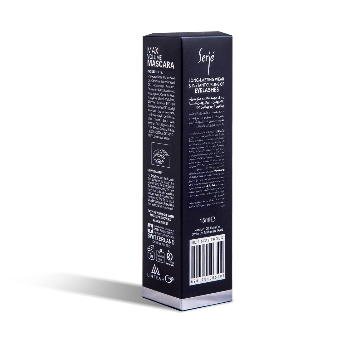 حجم دهنده مژه , ماندگاری بالا و حالت دهی به مژه بدون ریزش زیر چشم , مقاوم به تعریق , شستشوی آسان با پاک کننده های آرایش , فاقد پارابن. حاوی روغن مارولا , روغن کاملیا , ویتامین E , پرو ویتامین B5.