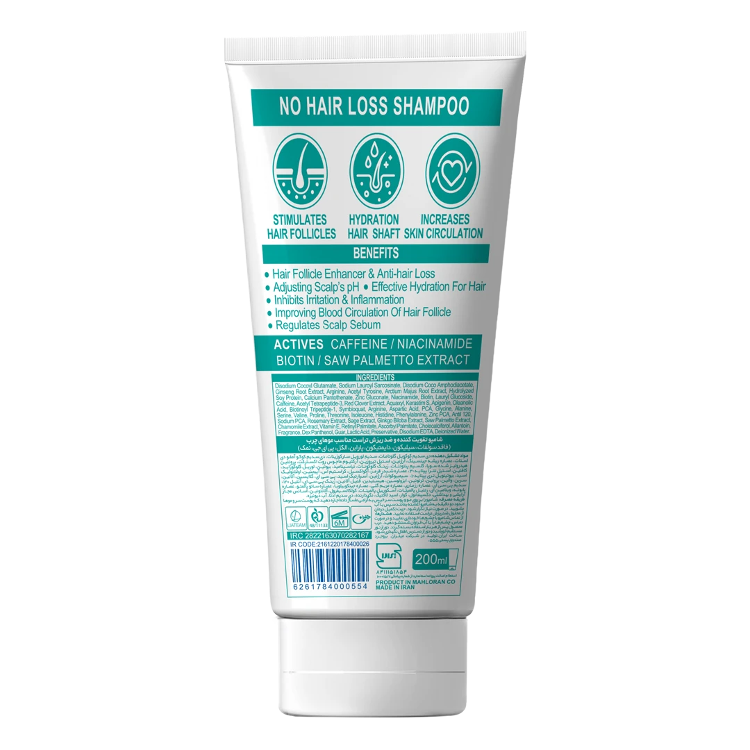 تأثير عالي در كنترل و درمان انواع ريزش مو. افزايش گردش خون پوست سر و تقويت رشد مو. ترميم و تقويت فوليكولهای مو و استحكام تار مو. تنظيم چربي مو و پوست كف سر. فاقد سولفات، سیلیکون، دایمتیکون، پارابن، الکل، پی ای جی و نمک