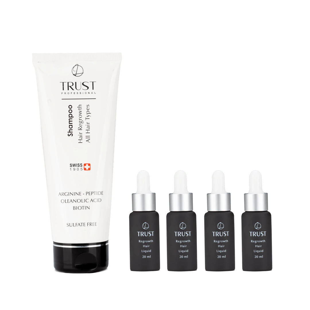 فاقد ماينوكسيديل، سولفات، سيليكون، پارابن، الكل و نمك. از شامپو داخل کیت هفته ای دو تا سه بار حمام رفته و استفاده نمایید. سرم های داخل کیت هر شب به کف سر زده شود و ماساژ دهید. در کنار آن از سرم بیوتین بپانتین استفاده نمایید. دوره درمان ۶ ماه طول می کشد و دو ماه اول ممکن است ریزش بیشتر شود.